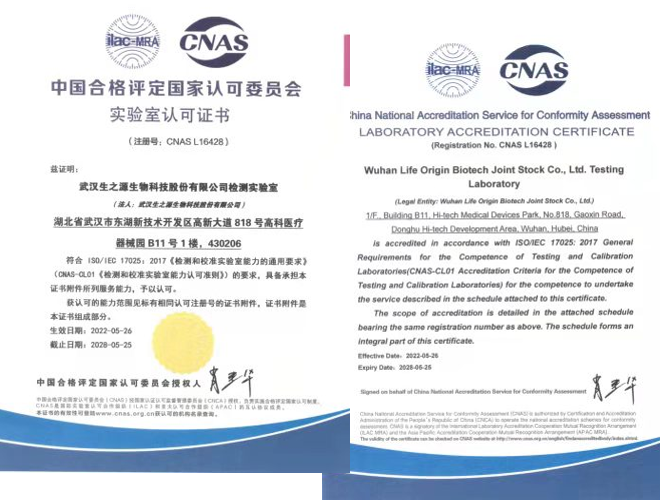 武漢生之源檢測實(shí)驗(yàn)室于2022年5月26日獲得由CNAS官方頒發(fā)的CNAS認(rèn)可證書(CNAS-CL01)(圖2)。