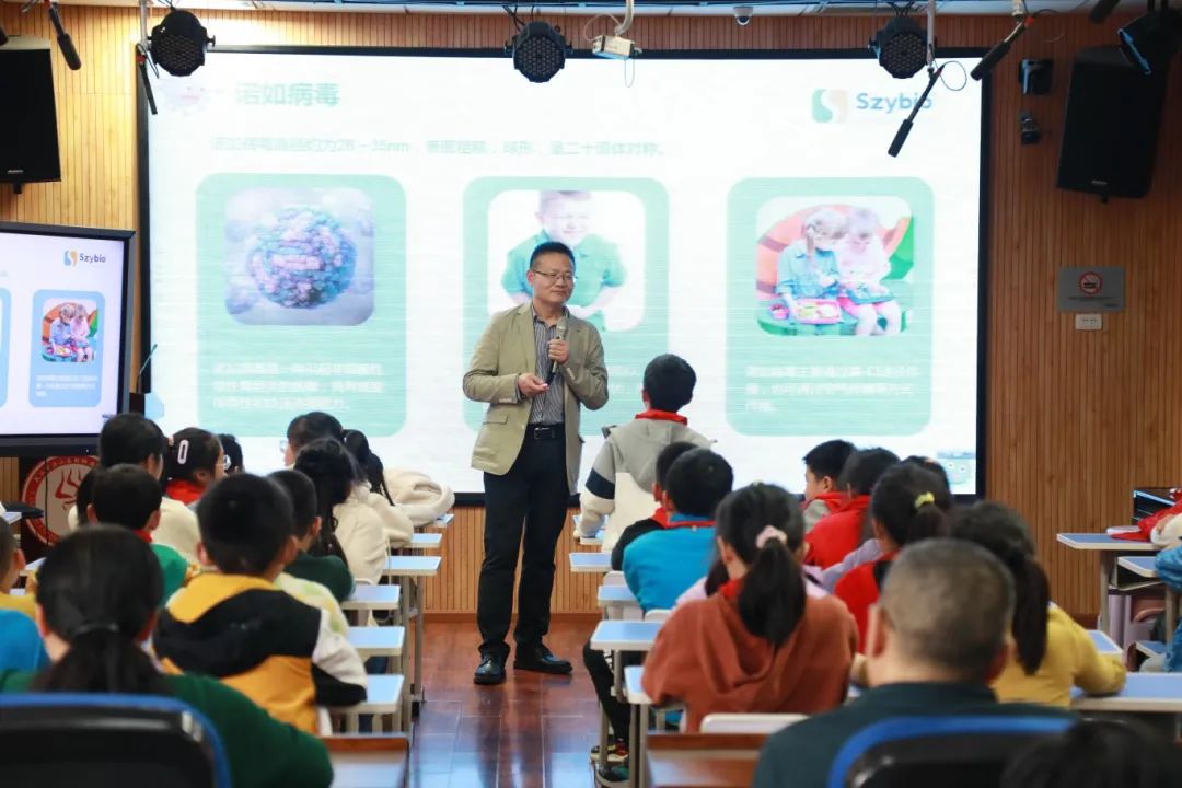 3月22日下午,農(nóng)工黨洪山區(qū)工委第6次“同心筑夢”進(jìn)校園活動在洪山區(qū)珞獅路小學(xué)舉行。武漢生之源生物科技股份有限公司董事長、農(nóng)工黨員華權(quán)高受邀以“神秘的病毒是如何檢測的?”為題,向四年級的80多名同學(xué)講授了一堂科普知識課。