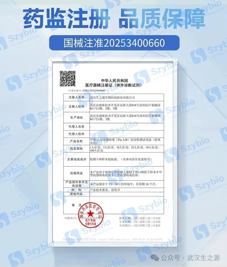 生之源甲型/乙型流感病毒(Flu A/B)抗原檢測(cè)試劑盒(膠體金法)精準(zhǔn)匹配當(dāng)前主流疫情:可準(zhǔn)確檢測(cè)甲型流感(覆蓋H3N2亞型),助力門急診快速分流,降低院內(nèi)交叉感染風(fēng)險(xiǎn),提升診療效率,為臨床診斷提供重要參考;