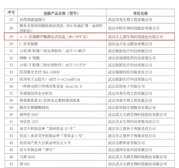 近期, 武漢市科技局、市發(fā)改委、市財政局公布了2019年度武漢市創(chuàng)新產(chǎn)品目錄,其中武漢生之源生物科技股份有限公司(以下簡稱“生之源”)自主研發(fā)的α-L-巖藻糖苷酶測定試劑盒(MG-CNPF法)成功入選。