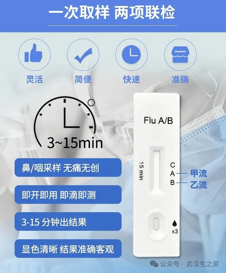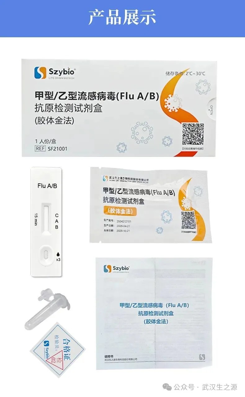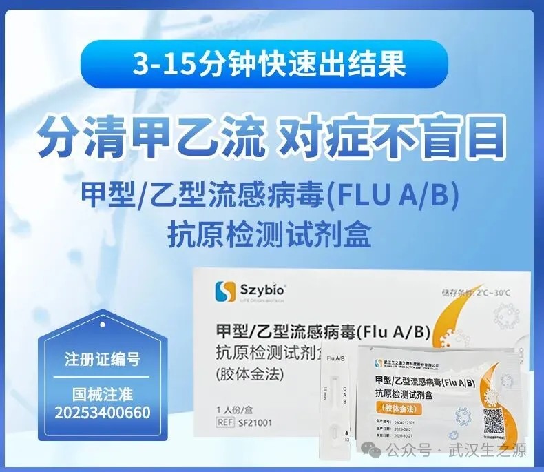 生之源甲型/乙型流感病毒(Flu A/B)抗原檢測(cè)試劑盒(膠體金法)精準(zhǔn)匹配當(dāng)前主流疫情:可準(zhǔn)確檢測(cè)甲型流感(覆蓋H3N2亞型),助力門急診快速分流,降低院內(nèi)交叉感染風(fēng)險(xiǎn),提升診療效率,為臨床診斷提供重要參考;